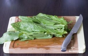 2. То же самое сделайте и со щавелем. Переберите его, помойте, высушите, листья крупно порежьте их.