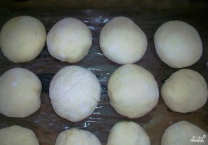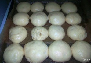 Выкладываем пирожки на противень, смазанный маслом, швом вниз. Оставляем пирожки на 10-15 минут, пусть расстоятся.