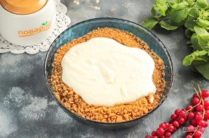 Высыпьте медовую крошку в миску или широкую емкость, выложите туда же крем. Влейте лимонный сок и все тщательно перемешайте.
