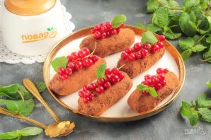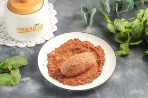 Далее высыпьте на тарелку какао-порошок или кокосовую стружку, медовую крошку — то, в чем вы будете обкатывать картошки. Разделите охлажденную массу на равные части и скатайте их в руках в колобки или продолговатые колбаски. Обпанируйте в какао или крошке со всех сторон.