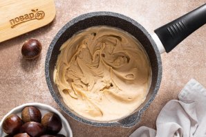 После достаньте ванильный стручок, а каштаны вместе с молоком измельчите блендером до однородности. Если пюре кажется слишком густым, можно подлить еще немного молока.