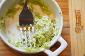 Для гуакамоле: авокадо измельчите, добавьте нарезанный лук и майонез. Посолите. Для сальсы: помидор нарежьте мелким кубиком.