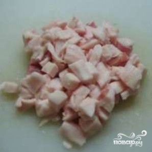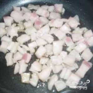 Нарежьте сало небольшими кубиками (сторона кубика - примерно 1 см).