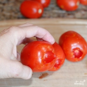 Помидоры моем, вырезаем жесткую плодоножку.
