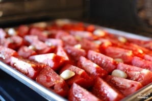 Выкладываем на помидоры зубчики чеснока.