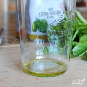 На дно баночки, в которой будем хранить помидоры, наливаем немного оливкового масла.