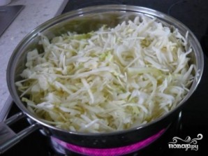 Добавляем свежую капусту, соль, перец, томатную пасту и тушим 10-15 минут, чтобы капуста стала мягкой.