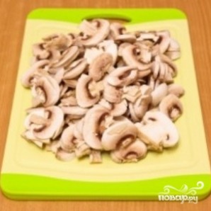 Режем свежие шампиньоны небольшими кусочками или пластинами.