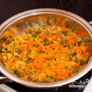 Перекладываем тушеные овощи в кастрюлю, варим 7-10 минут. Добавляем еще немного соли, зелень и специи по вкусу и даем солянке настояться в течение 10-15 минут.