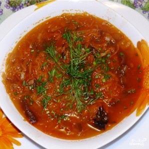 Посыпаем мелко нарубленной зеленью, снимаем с огня, даем настояться минут 10 под крышкой и подаем к столу. Постные щи готовы. ;)
