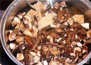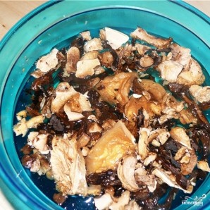 Сушеные грибы нужно предварительно замочить в холодной воде на пару часов.
