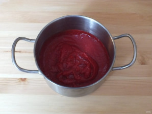 Переложите ранетки в кастрюлю и с помощью погружного блендера пробейте в пюре.
