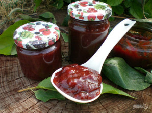 Кипящее повидло раскладываем по стерильным банкам и закатываем.