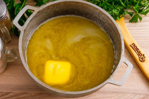 Сливочное масло растопите в кипящей воде, в казане или кастрюле с антипригарным дном, ковше. Всыпьте туда же соль.