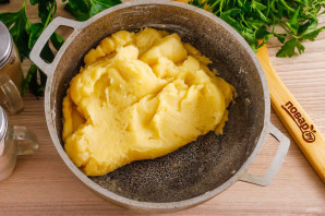 Заварите тесто и оставьте его на 5-10 минут в емкости, чтобы оно слегка остыло.