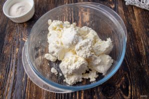 Приготовьте все необходимые ингредиенты для приготовления сырников. Творог используйте максимально сухой, тогда структура готовых сырников получится более плотной и муки потребуется меньше.