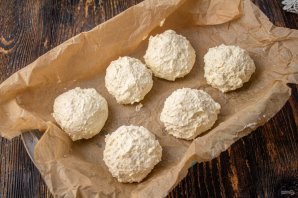 Слегка влажными руками сформируйте круглые шарики и выложите их на противень, выстеленный пергаментом. Отправьте в заранее разогретую духовку до 190 градусов на 20 минут.