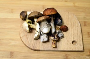 Для начинки грибы очистите и отварите в кипятке, пока они не опустятся на дно кастрюли. Затем откиньте на дуршлаг, дайте обсохнуть и нарежьте ломтиками. Затем обжарьте на масле до румяной корочки.