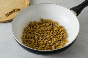 Слейте выделившуюся жидкость, отожмите кусочки и обжарьте с маслом до золотистого цвета на сковороде.