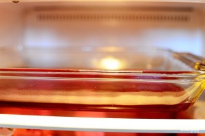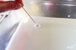 Образующиеся на поверхности пузырьки прокалываем зубочисткой. Ставим форму в холодильник.