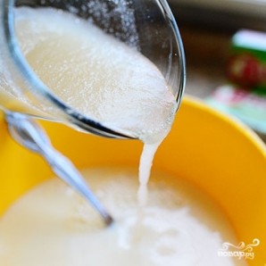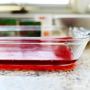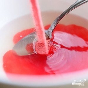 Немедленно добавляем в смесь треть порошка вишневого или клубничного желе.
