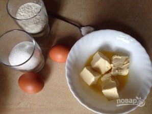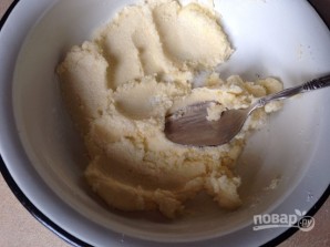 Масло должно быть мягким, слегка его растопите, а затем смешайте с сахаром, обычным и ванильным.
