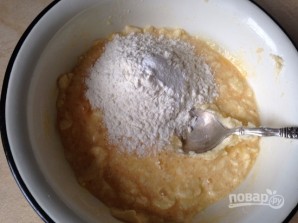 Всыпаем муку, смешанную с разрыхлителем.