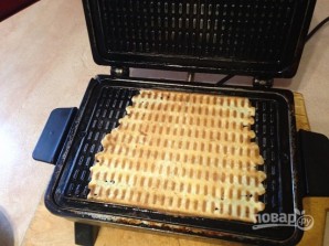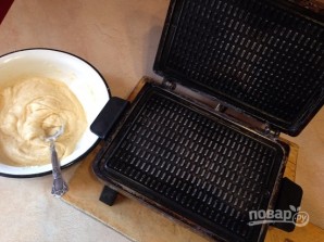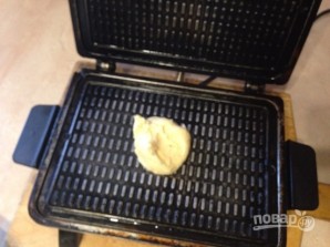Выкладываем столовую ложку теста по центру вафельницы и прижимаем крышку.