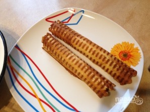И сворачиваем вафли в трубочку, пока они горячие.