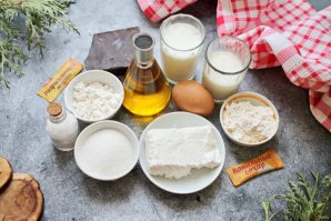 Подготовьте все необходимые ингредиенты для приготовления рулета из шоколадных блинов с кремом.
