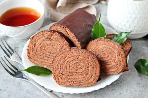 Рулет из шоколадных блинов с кремом