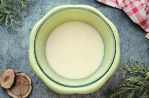 В теплое молоко разбейте яйца, добавьте соль, сахар и влейте растительное масло. Все хорошо перемешайте до однородности.