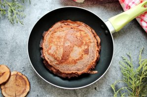 Испеките из всего теста блины в смазанной растительным маслом сковороде на медленном огне.
