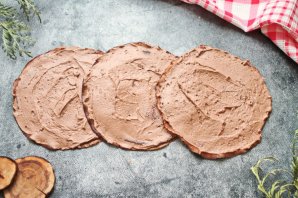 Каждый шоколадный блин смажьте кремом.