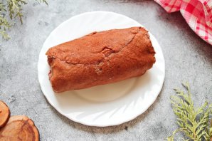 Сверните блины в один плотный рулет. Заверните в фольгу и уберите в холодильник на 3 часа.