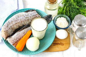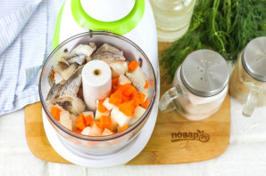 Разморозьте морскую рыбу, если приобретали ее замороженной. Очистите от чешуи, выпотрошите, промойте. Срежьте мякоть. Очистите овощи от кожуры, промойте в воде. Рыбу и овощи нарежьте кубиками, небольшими кусочками.