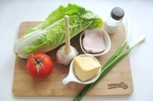 Салат с пекинской капустой и копченой курицей