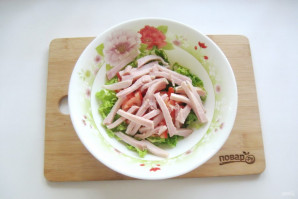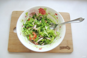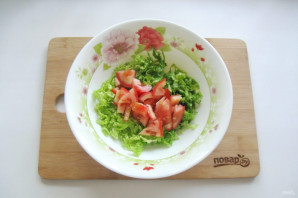 Помидор нарежьте и добавьте в салат.