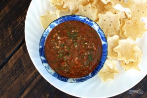Домашний соус готовится просто и быстро. Базовые ингредиенты для сальсы – это томаты, перец, лук, чеснок. Кроме этих ингредиентов можно добавить морковь, разную зелень, сок цитрусовых (если хотите более сладкий соус). Сальса – это подобие привычного нам томатного соуса, только более острый или пикантный. Подавайте соус охлажденным, а храните его в холодильнике Готовый соус можно хранить в холодильнике несколько дней.