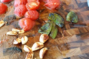 5. Переверните помидоры и чеснок, снова поставьте под гриль (или в духовку) на 2 минуты.