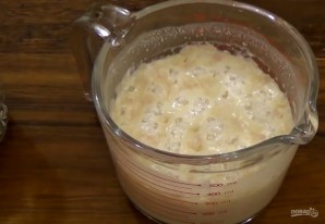 1. Теплое молоко смешайте с чайной ложкой сахара, прессованными дрожжами, добавьте четыре столовые ложки муки. Хорошо перемешайте и дайте постоять в течение 15 минут при комнатной температуре.
