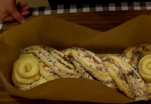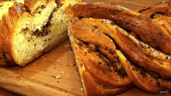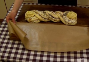 8. Слегка взбейте желток и смажьте им косу. Выпекайте в разогретой до 180 градусов духовке 35-40 минут.