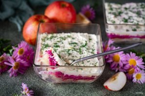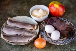 Салат готовится быстро и просто. Отправьте готовый салатик на 2 часа в холодильник, чтобы все слои хорошенько пропитались майонезом, затем уже подавайте к столу. Обязательно попробуйте приготовить "селедку под шубой" с яблоками по этому рецепту и порадуйте родных вкусным блюдом Салат готов к подаче.