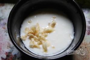 Пока займитесь соусом. В греческий йогурт добавьте чеснок, пропущенный через пресс.