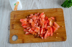 Так же, как и огурец, нарежьте помидор.