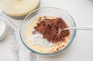 Поверх налейте 1-2 столовые ложки шоколадного теста.