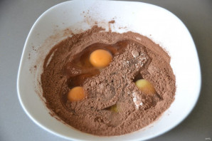 Вбейте три яйца, размешайте.