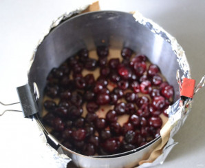 На дно формы (диаметр 16 см.) выложите вишню.