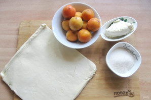 Подготовьте ингредиенты для приготовления слоек с абрикосами и творогом.