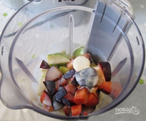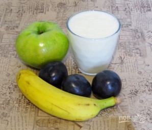 Измельчите до однородности. Подавайте смузи из слив, банана и яблока сразу же.